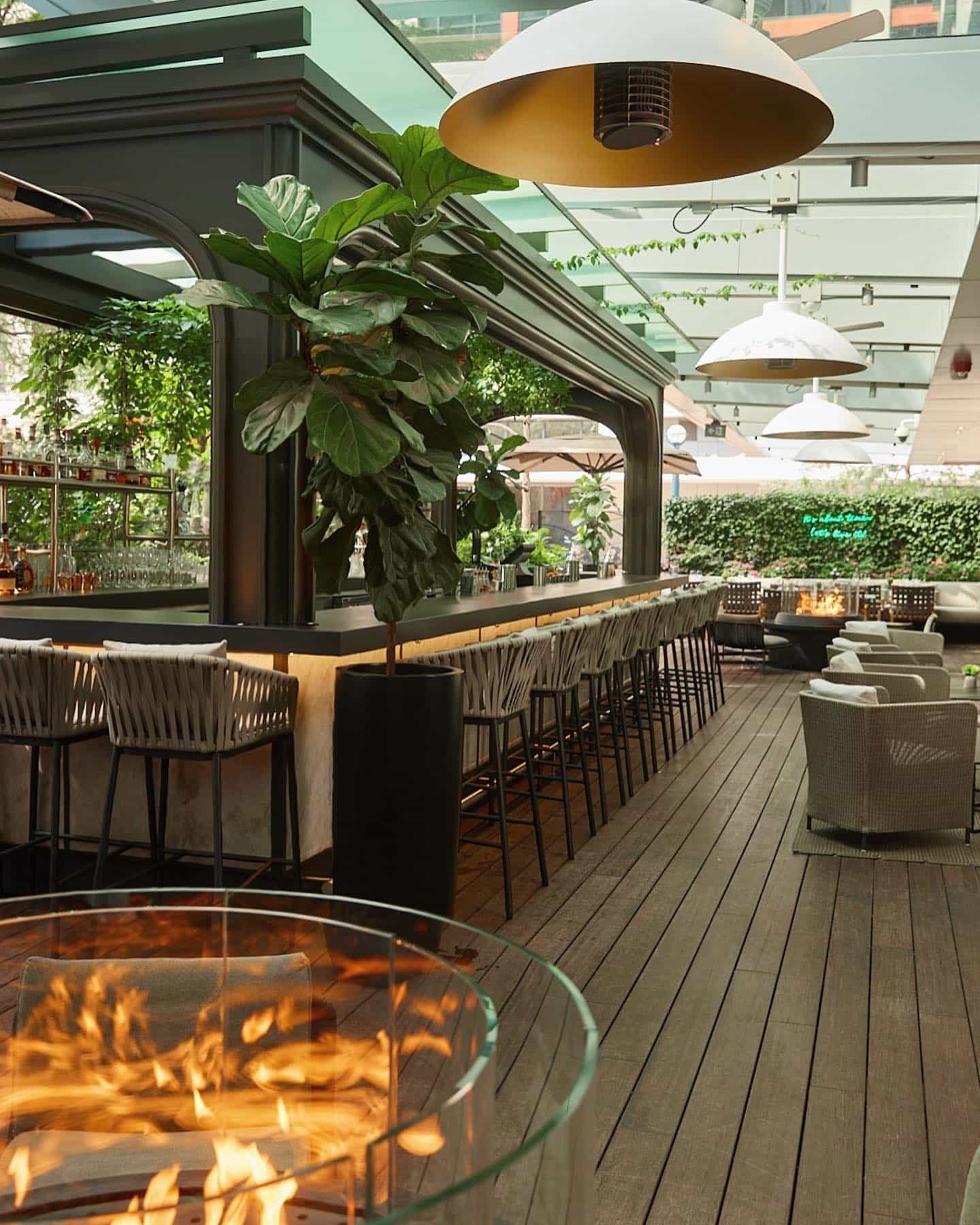 While the venue’s indoor seating is lovely and appears quite comfortable, the location is perhaps best known for its large garden-style patio. The terrace features outdoor heaters (with the servers also being happy to offer you blankets on a cooler night), a lovely centerpiece bar, and a wood-fired stone oven which is used to make their signature pizzas.